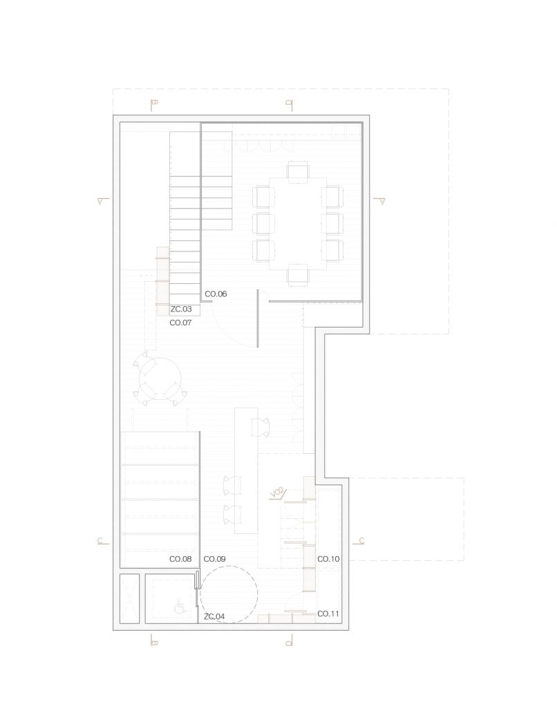 La propuesta se concibe como un espacio que se organiza alrededor de tres patios en los cuales se desarrollan los elementos comunes y de programa, que contribuyen a organizar los diferentes niveles de privacidad y configurar una atmósfera de relación fluida con el usuario.