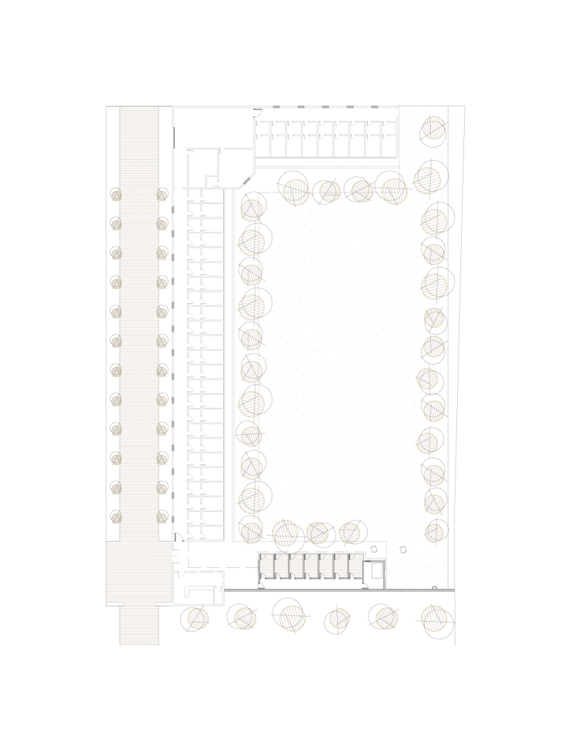 Con criterio de implantar un funcionamiento coherente con las preexistencias de la parcela, tanto de tipo residencial como agrario, se convierte el recinto en un forma global en planta en C alrededor del patio de recreo compartido.